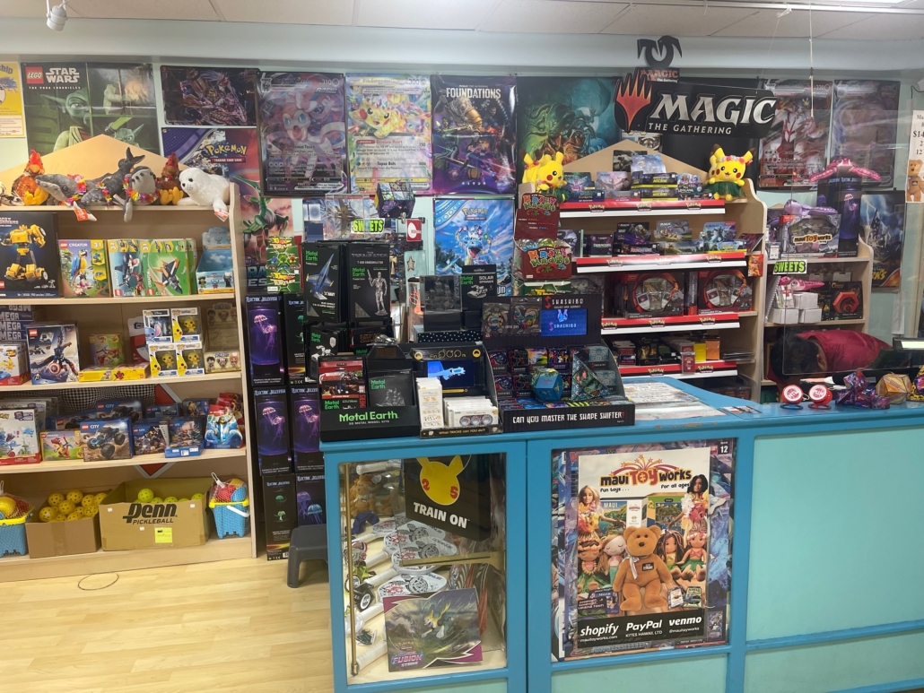 Maui Toy Works is a fun, specialty toy store for all ages. Featured are children's clothing, plush, books, water toys including mermaid tails, and games including trading card games such as Pokemon. The knowledgeable staff has many hands-on toys and games available to try.
